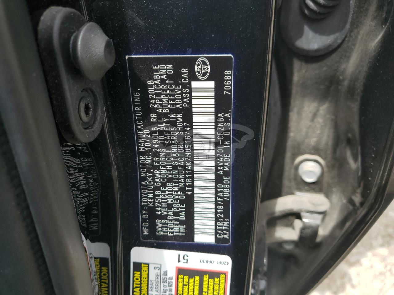 • VIN: 4T1R11AK7MU516747