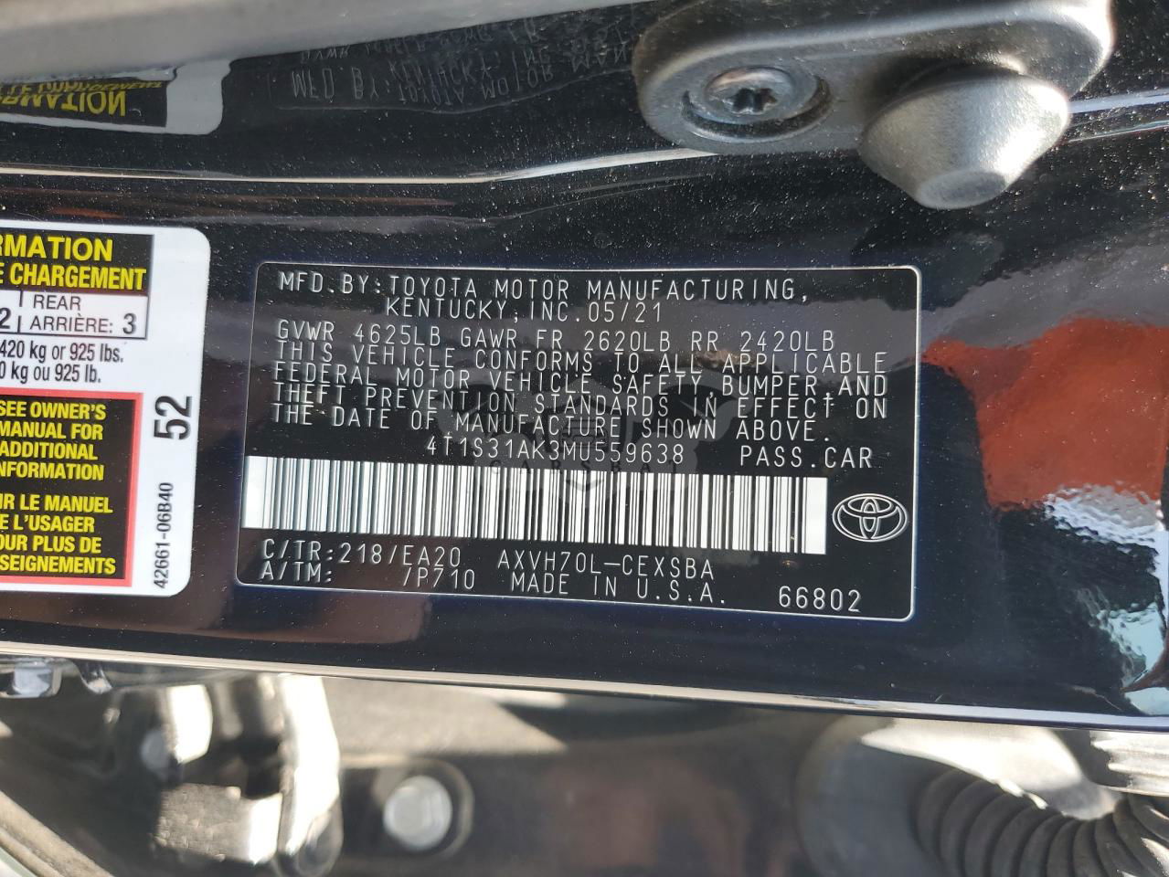 • VIN: 4T1S31AK3MU559638
