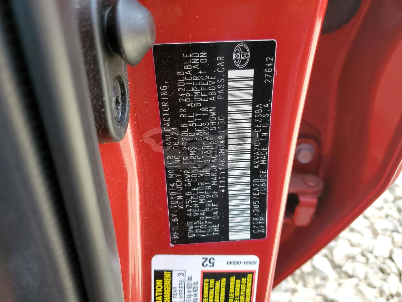 • VIN: 4T1T11AK1MU481130