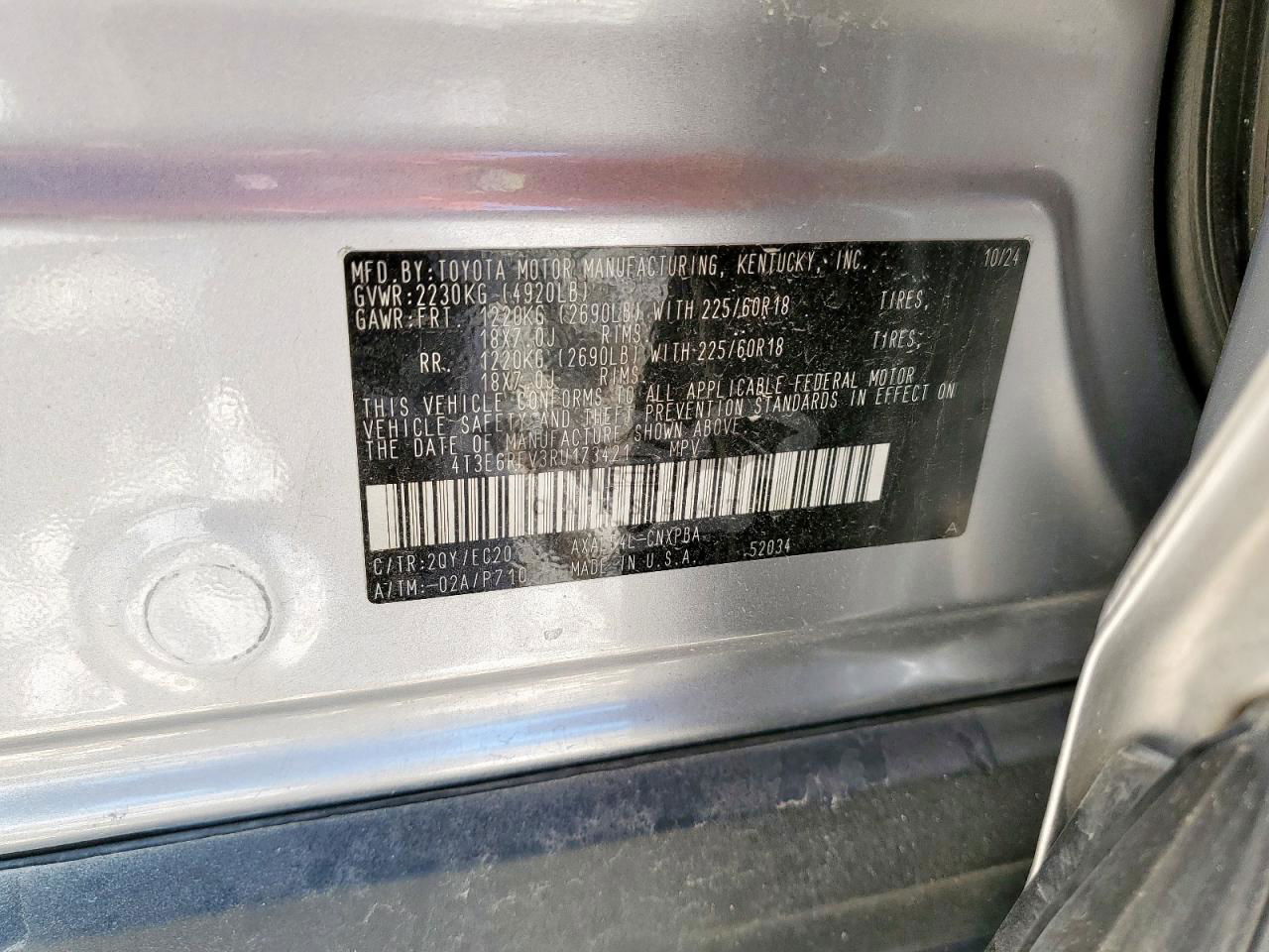 • VIN: 4T3E6RFV3RU173421