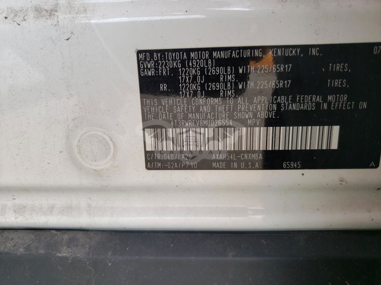 • VIN: 4T3RWRFV8MU026554