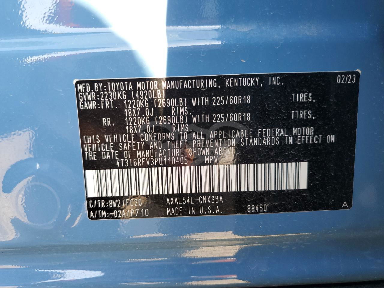 • VIN: 4T3T6RFV3PU110405