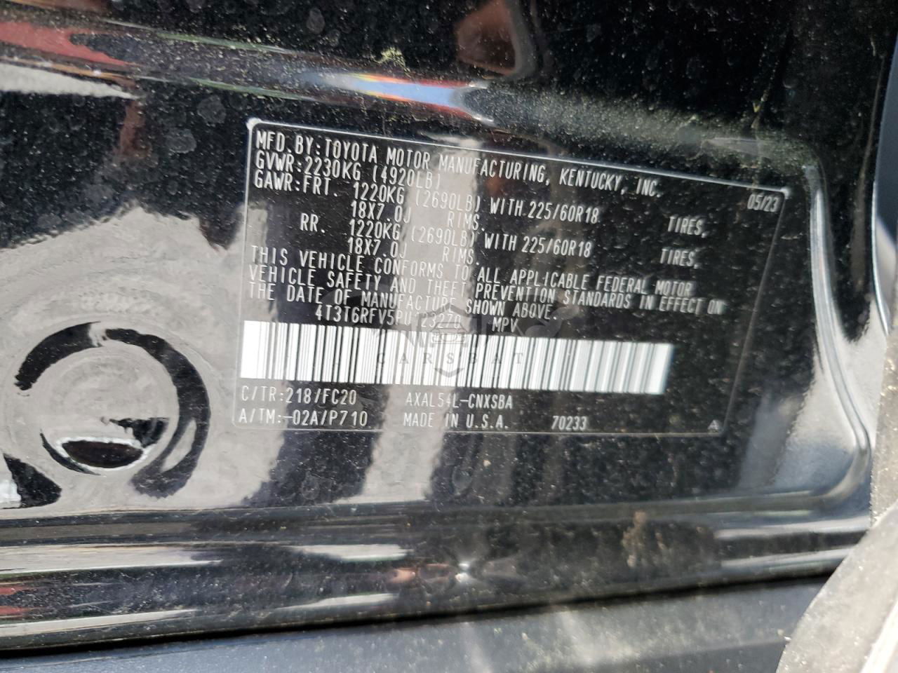 • VIN: 4T3T6RFV5PU123270