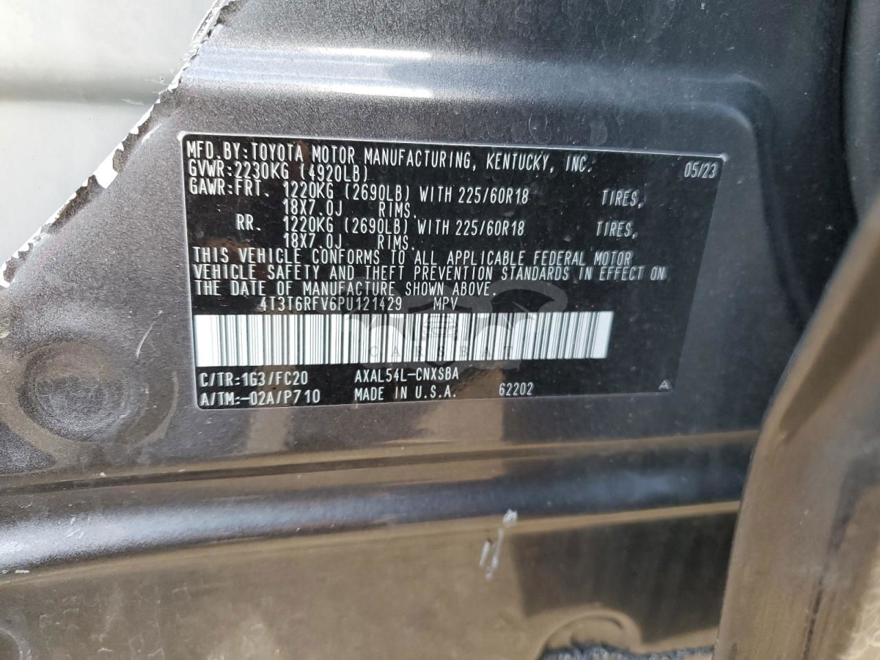 • VIN: 4T3T6RFV6PU121429