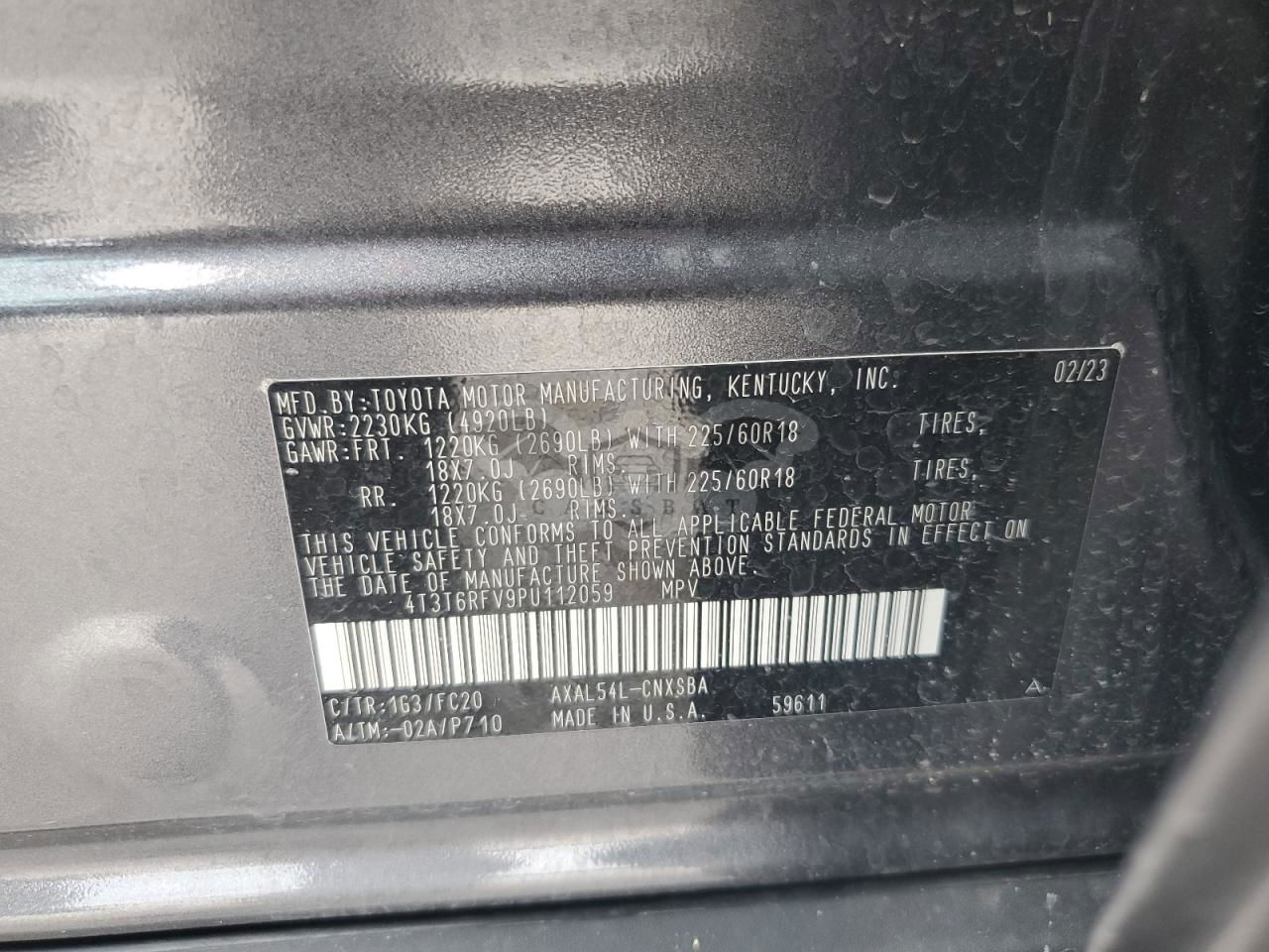 • VIN: 4T3T6RFV9PU112059