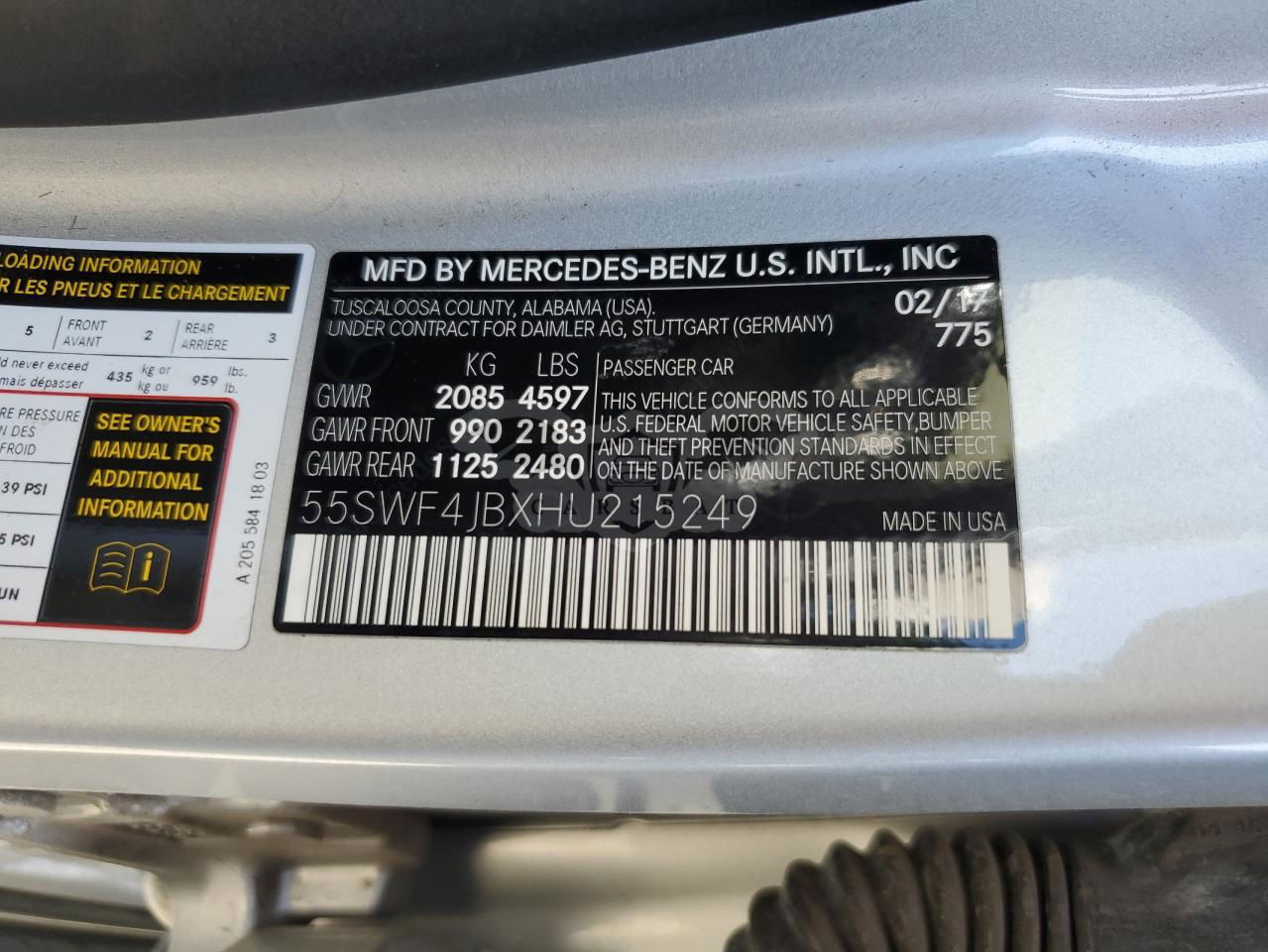 • VIN: 55SWF4JBXHU215249
