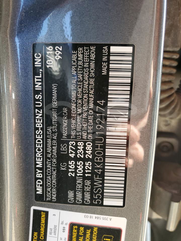 • VIN: 55SWF4KB0HU192174