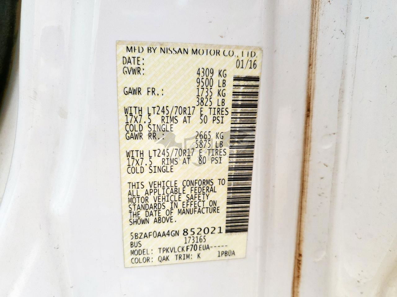 • VIN: 5BZAF0AA4GN852021