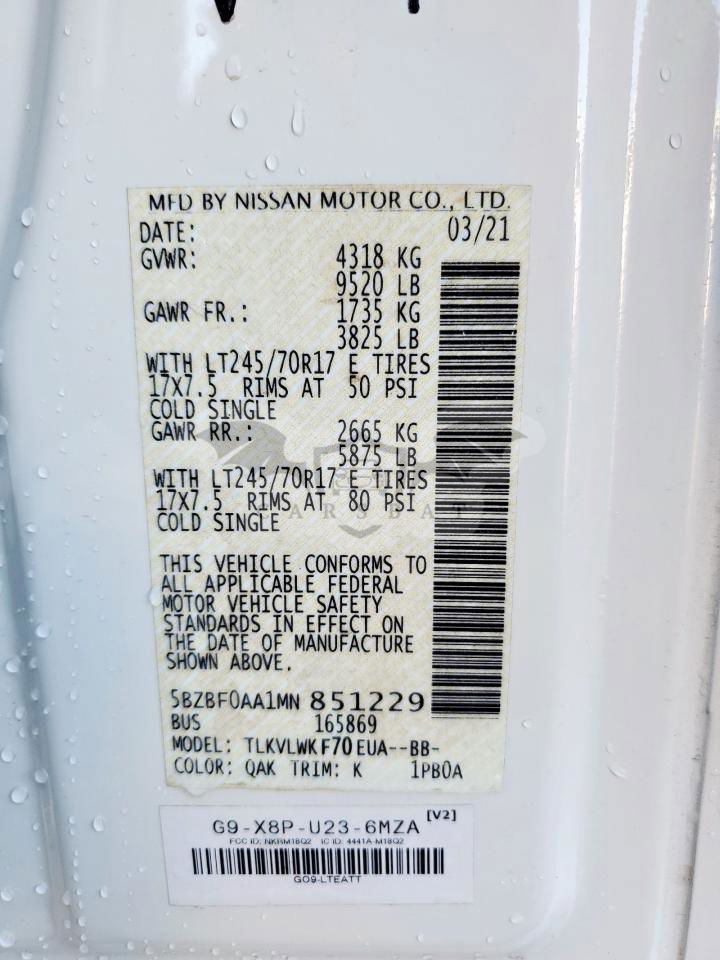 • VIN: 5BZBF0AA1MN851229