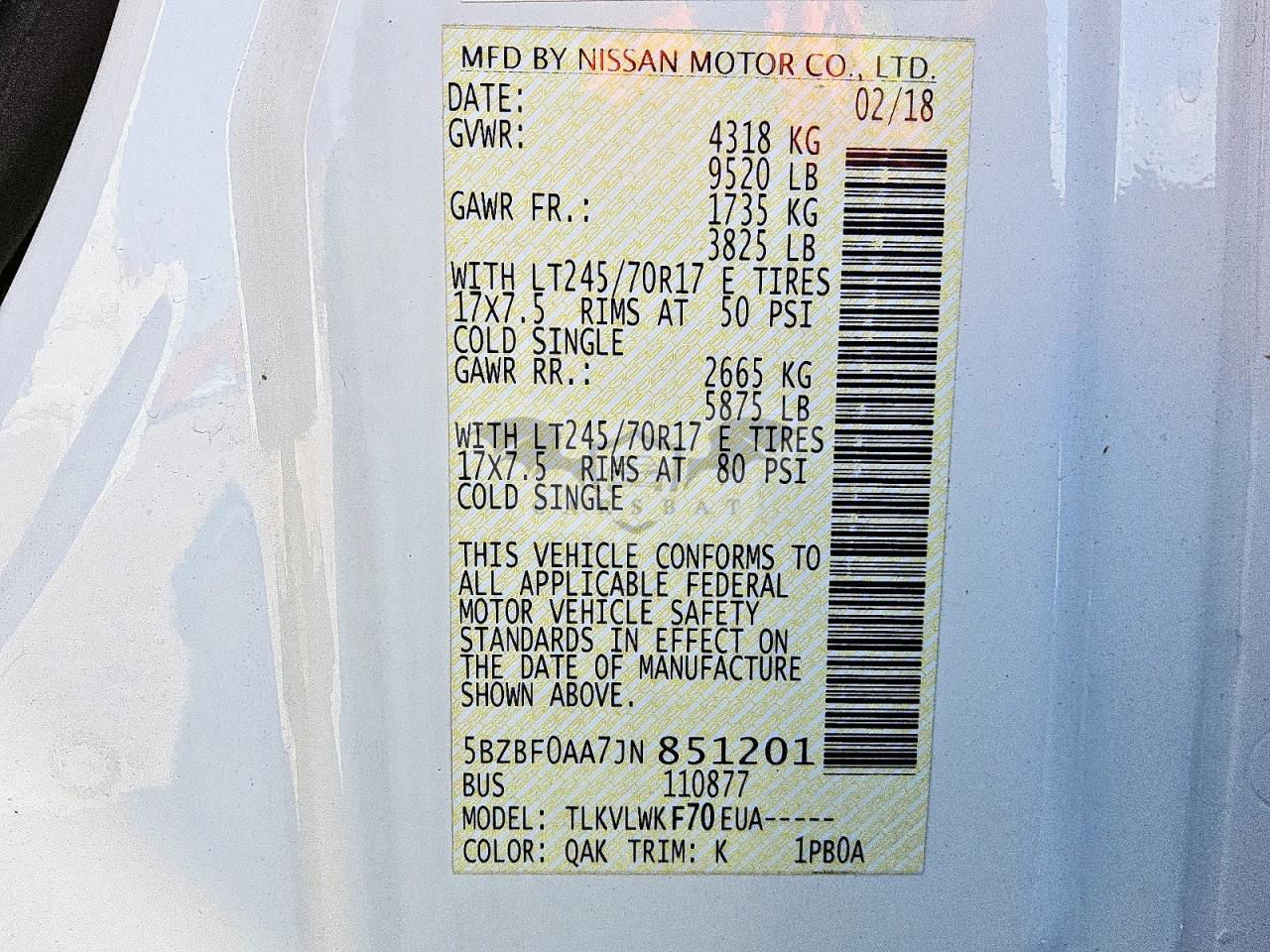 • VIN: 5BZBF0AA7JN851201
