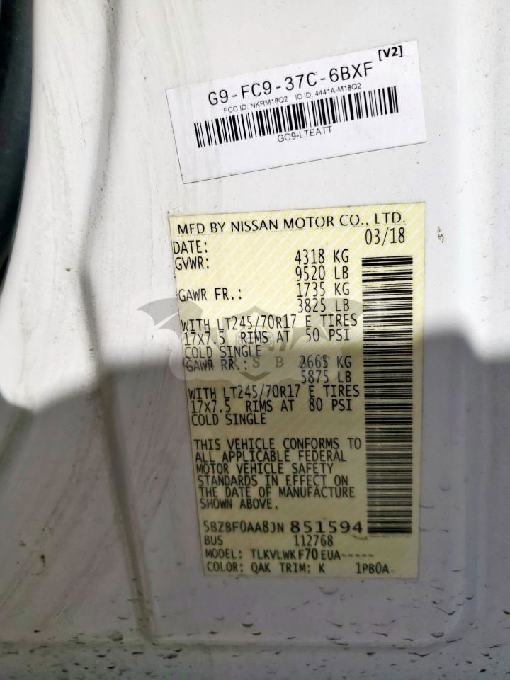 • VIN: 5BZBF0AA8JN851594