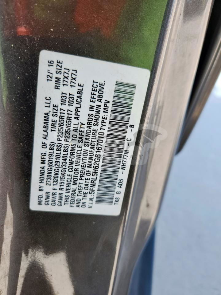 • VIN: 5FNRL5H62GB167010