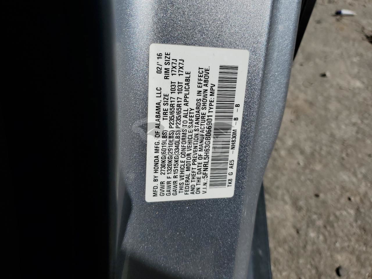 • VIN: 5FNRL5H63GB066901