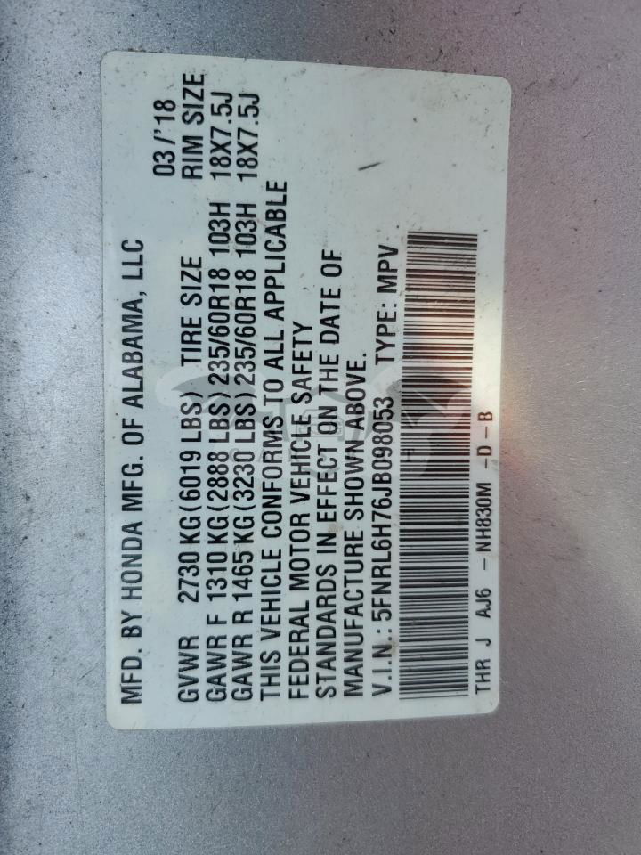 • VIN: 5FNRL6H76JB098053
