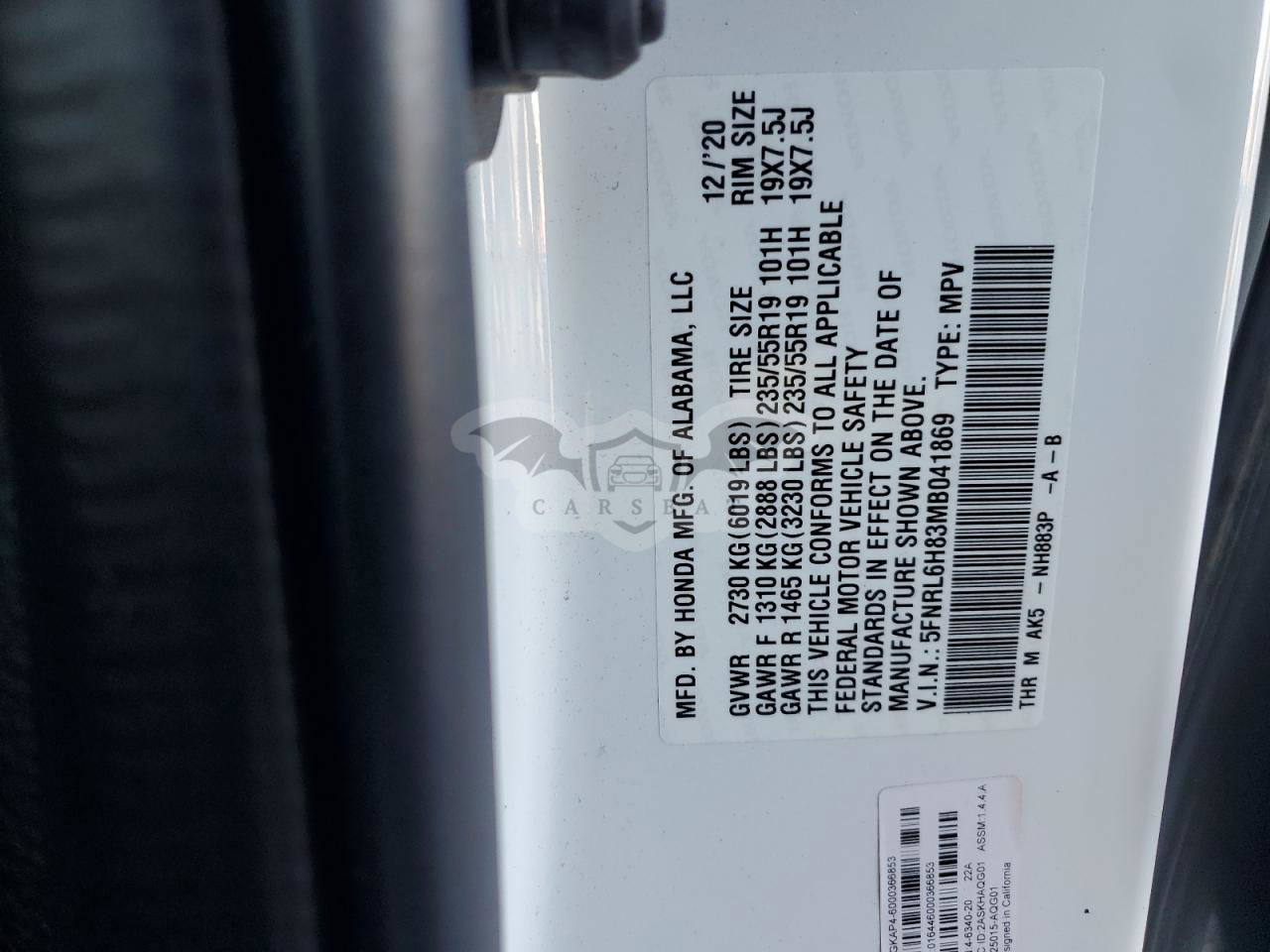 • VIN: 5FNRL6H83MB041869