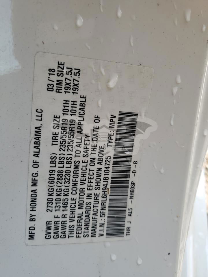 • VIN: 5FNRL6H94JB104725