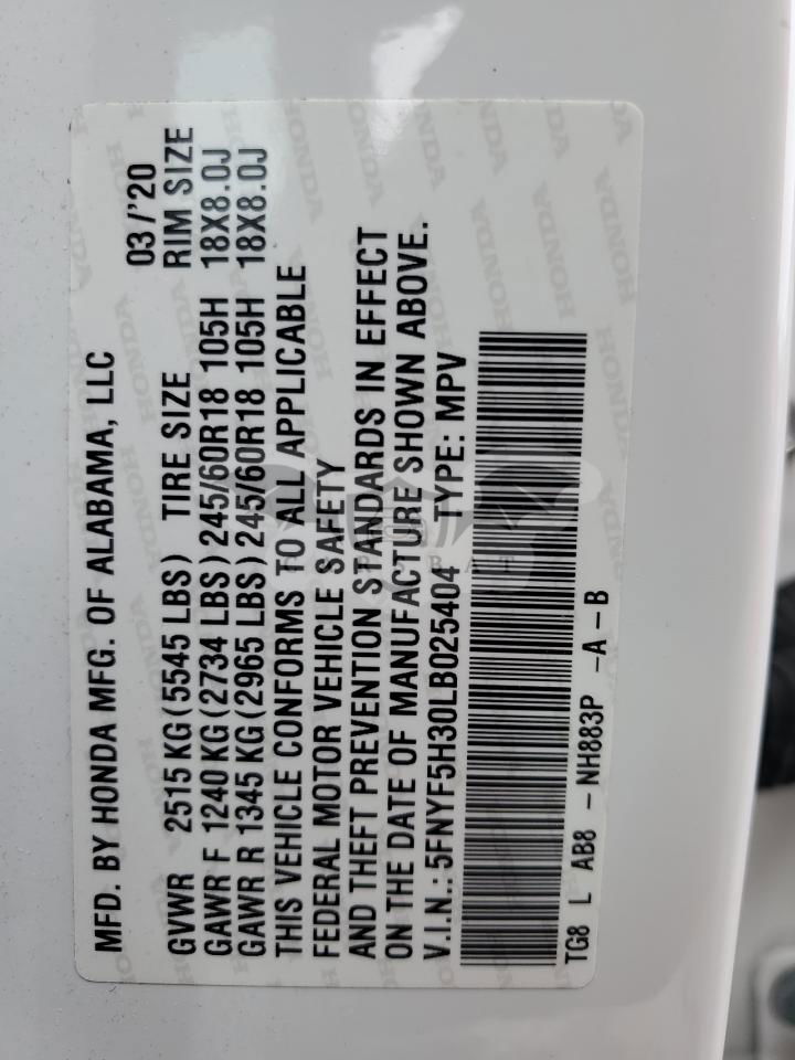 • VIN: 5FNYF5H30LB025404