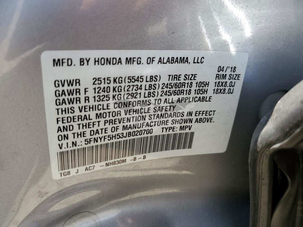 5FNYF5H53JB020700