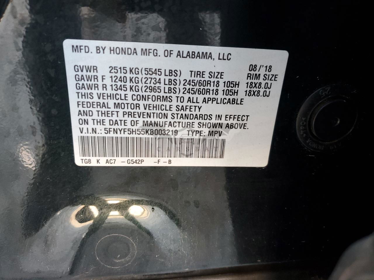 5FNYF5H55KB003219