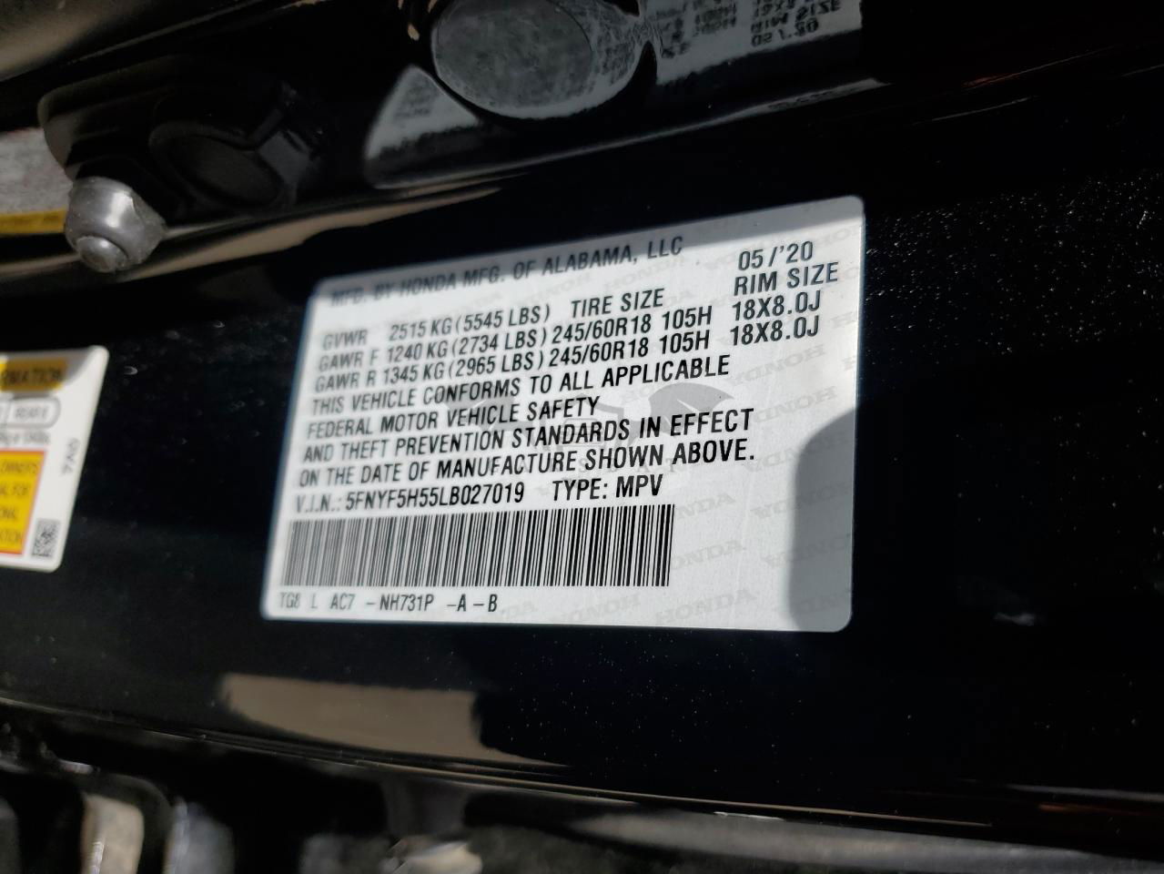 • VIN: 5FNYF5H55LB027019