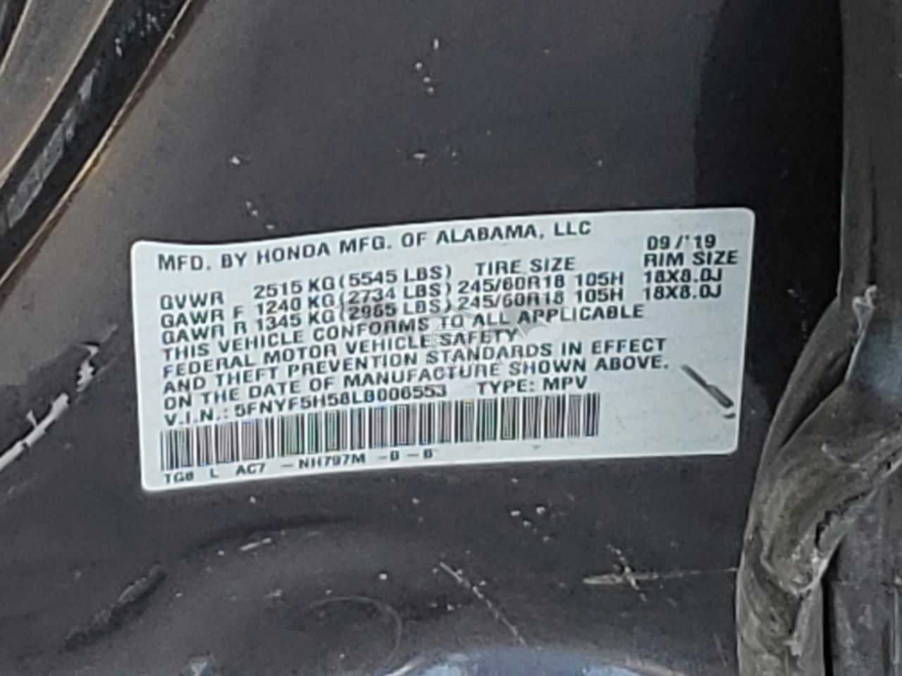 • VIN: 5FNYF5H58LB006553