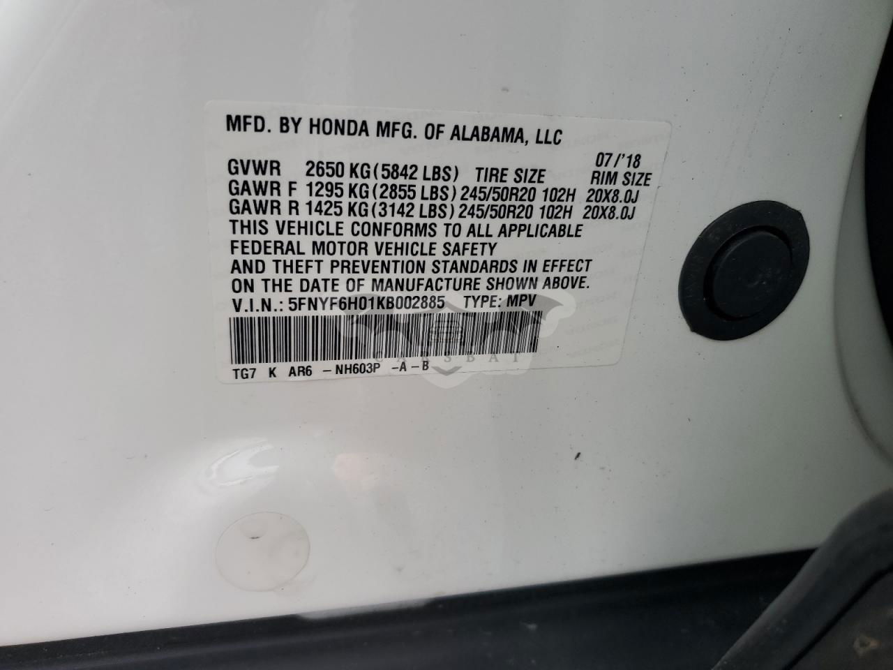 5FNYF6H01KB002885