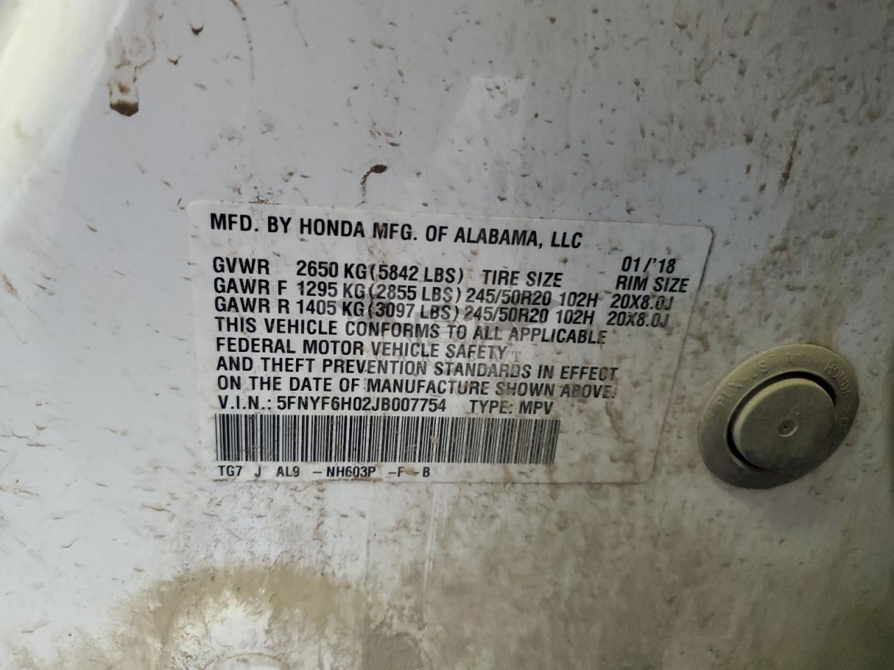 • VIN: 5FNYF6H02JB007754