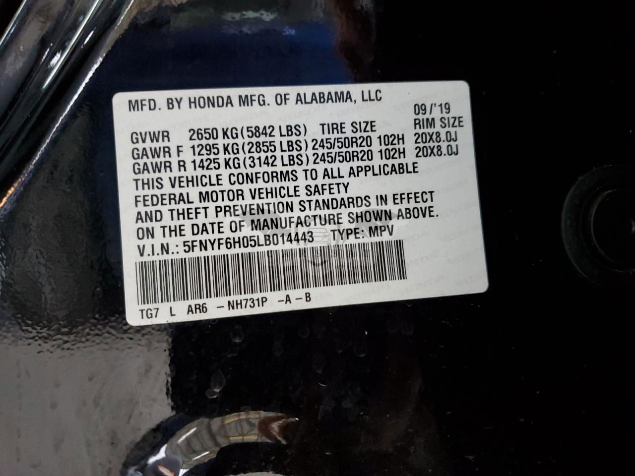 • VIN: 5FNYF6H05LB014443