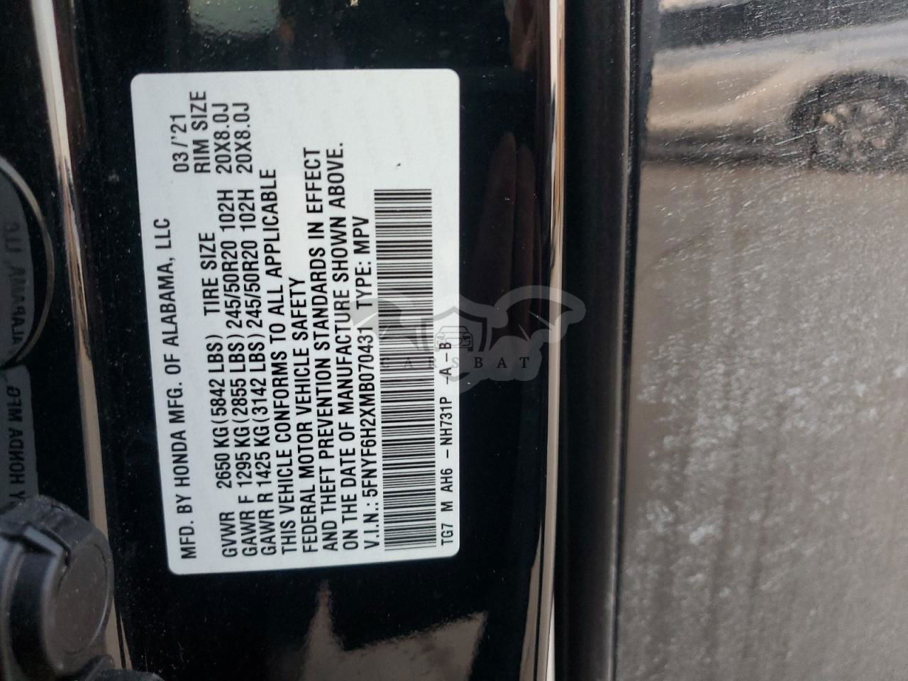 • VIN: 5FNYF6H2XMB070431