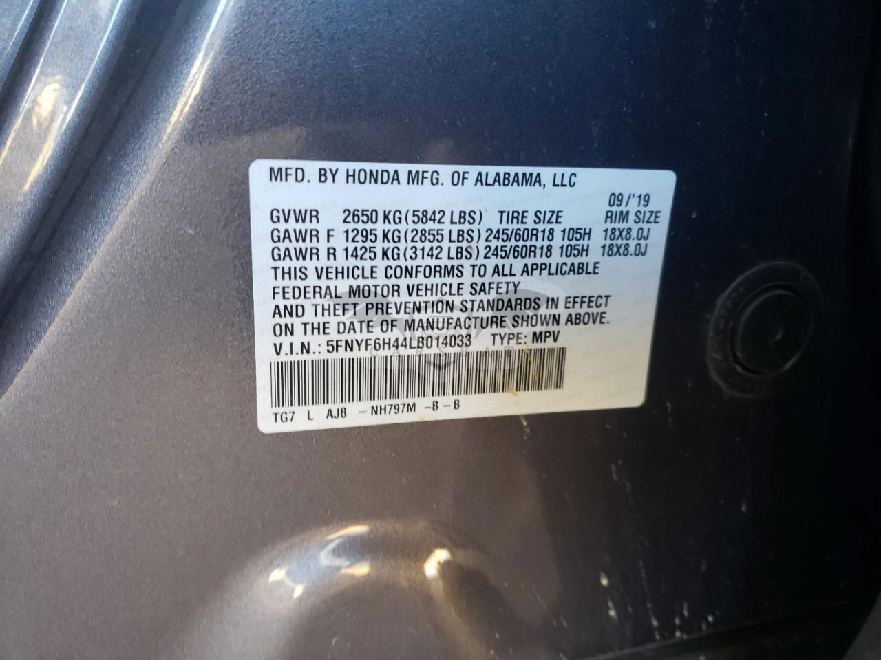• VIN: 5FNYF6H44LB014033