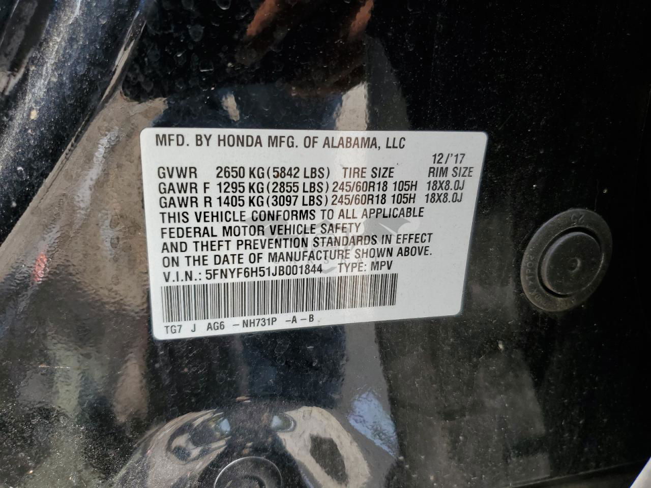 • VIN: 5FNYF6H51JB001844