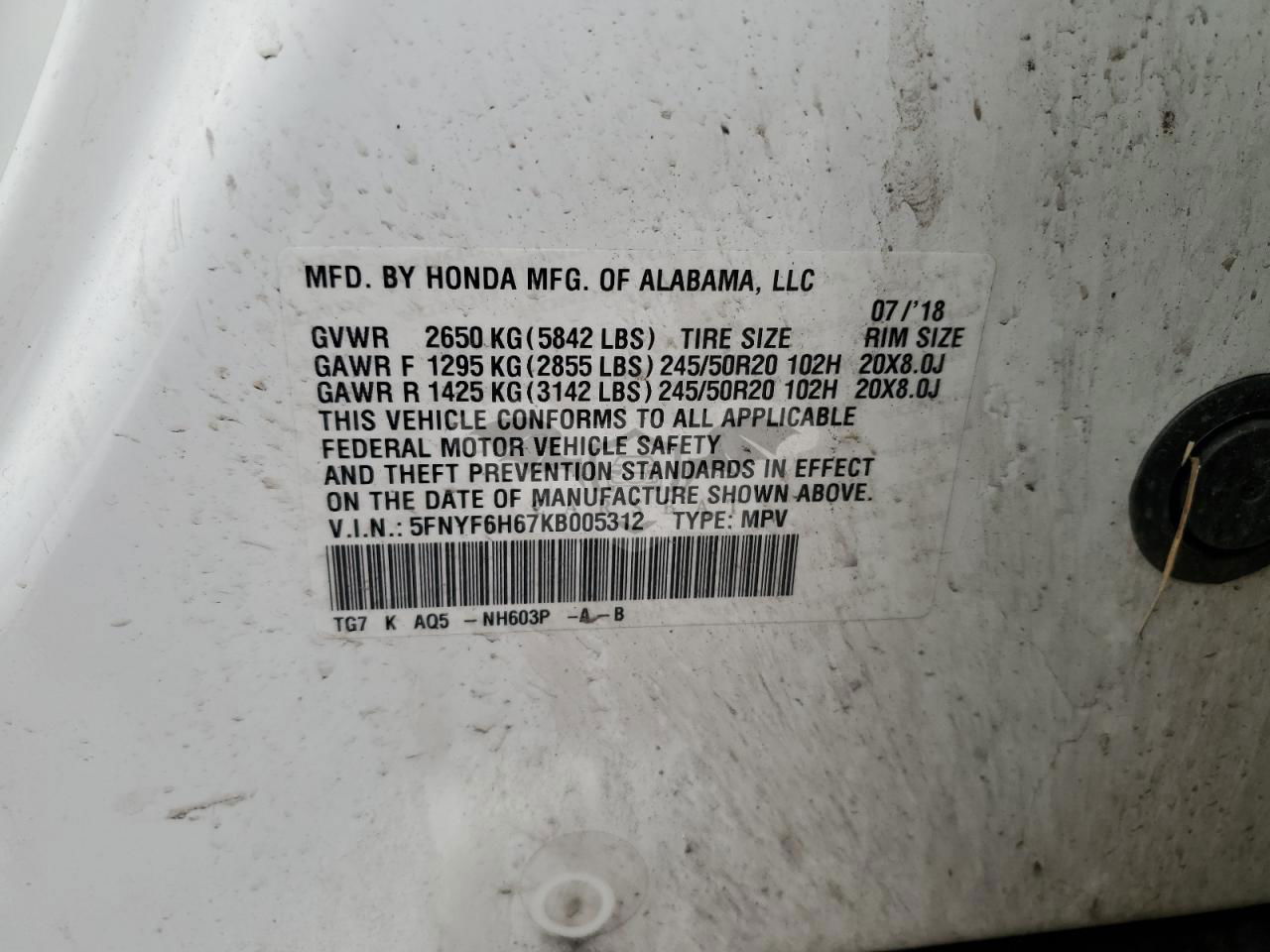 5FNYF6H67KB005312