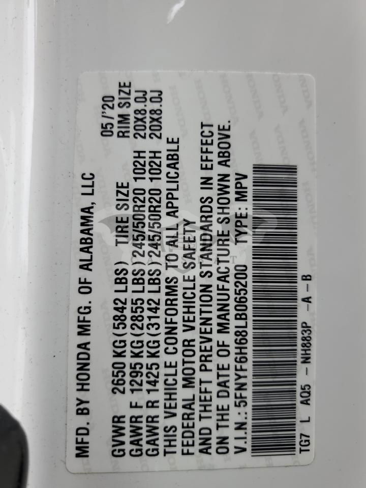 • VIN: 5FNYF6H68LB065200