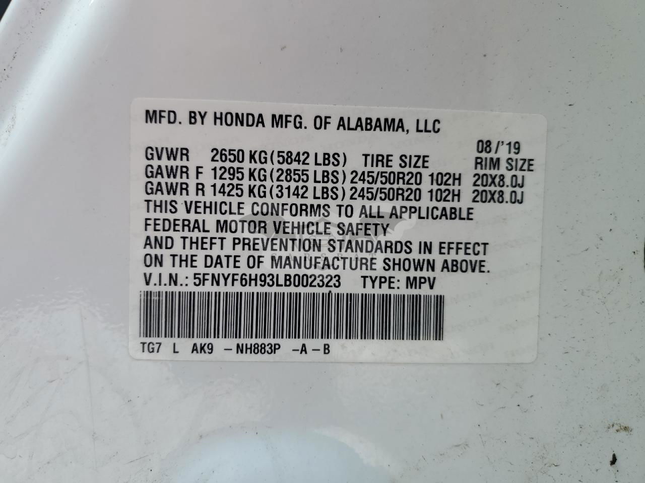 • VIN: 5FNYF6H93LB002323
