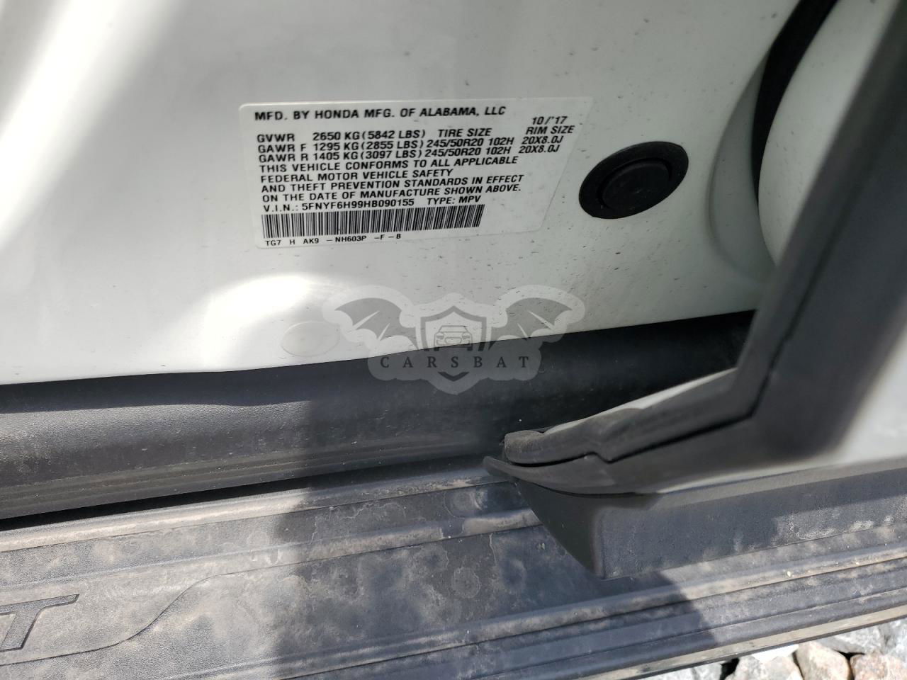 • VIN: 5FNYF6H99HB090155