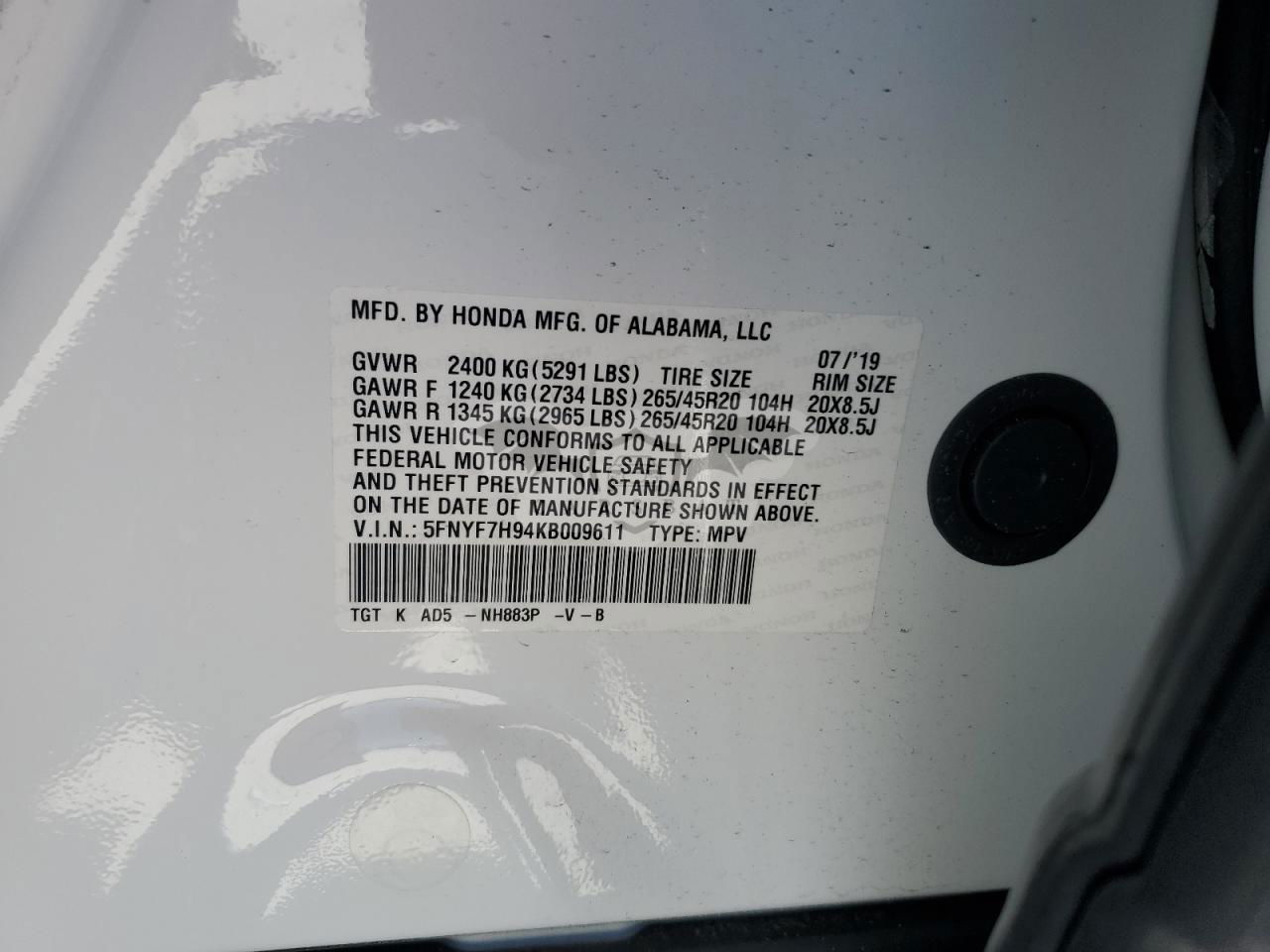 5FNYF7H94KB009611