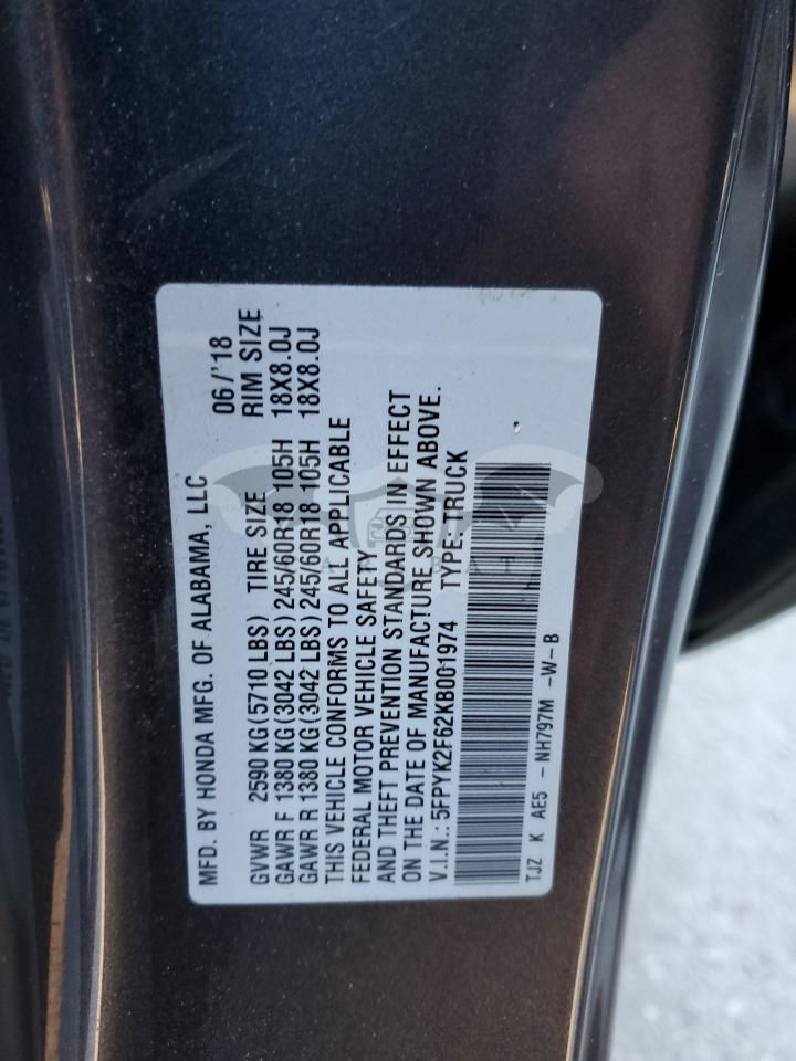 • VIN: 5FPYK2F62KB001974
