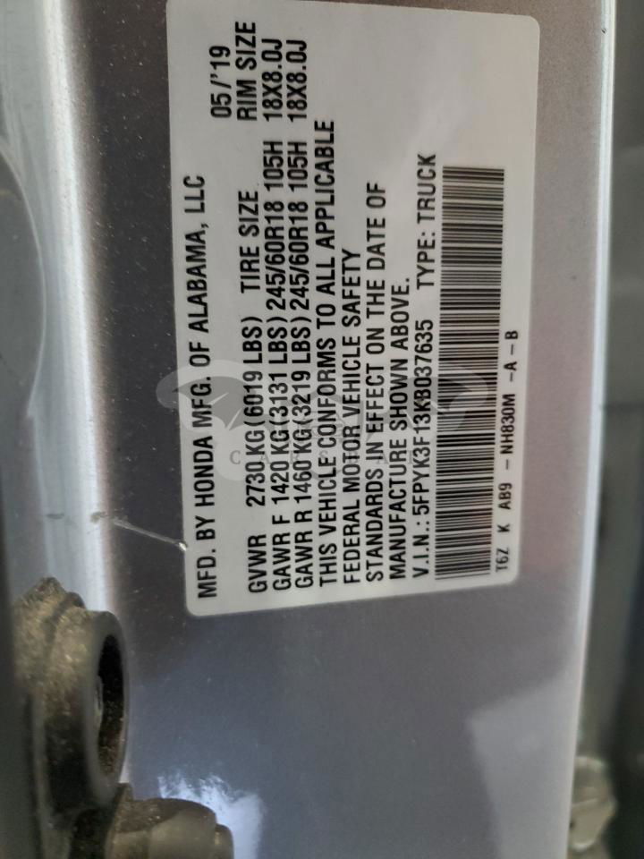 • VIN: 5FPYK3F13KB037635
