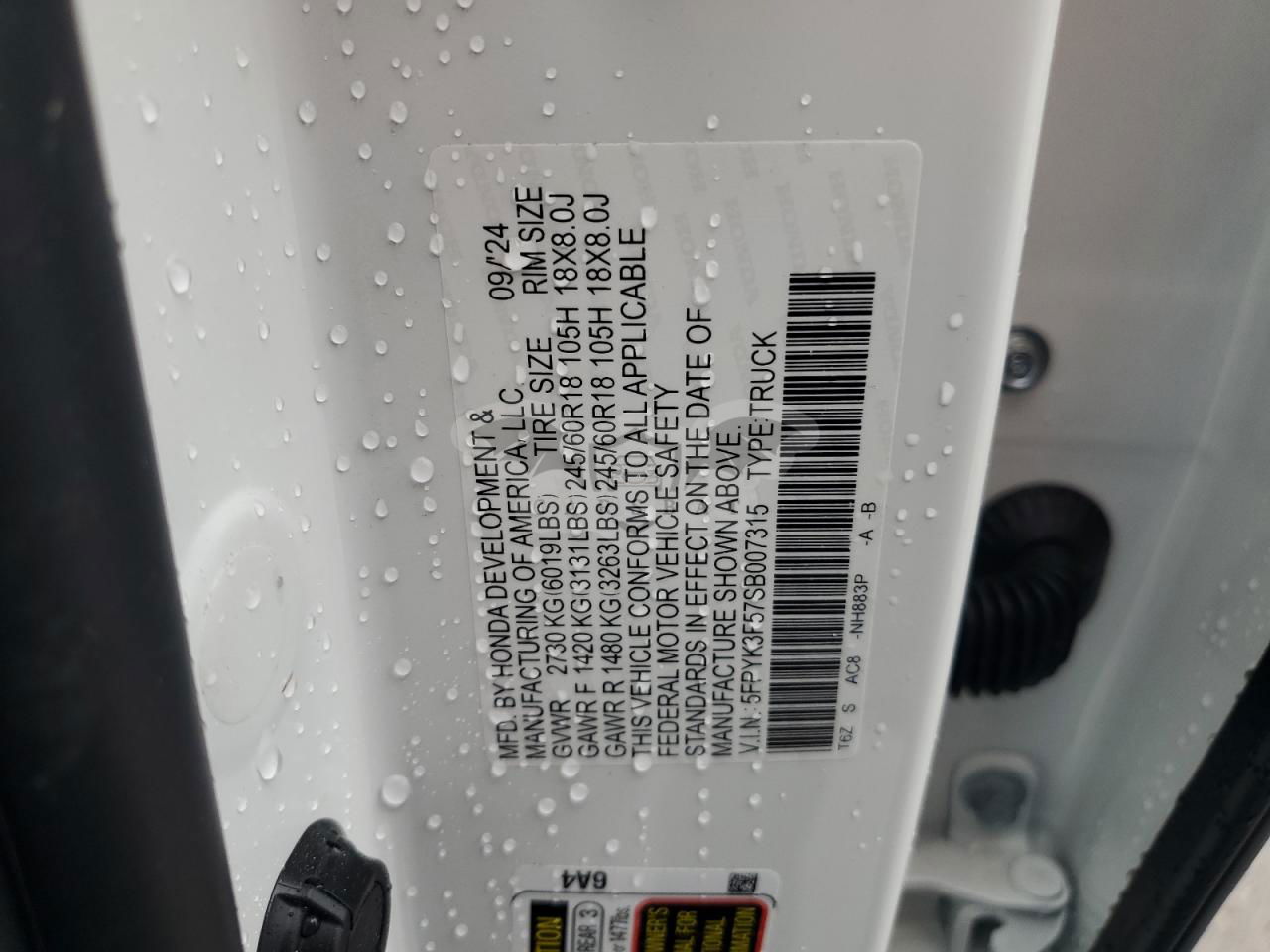 • VIN: 5FPYK3F57SB007315