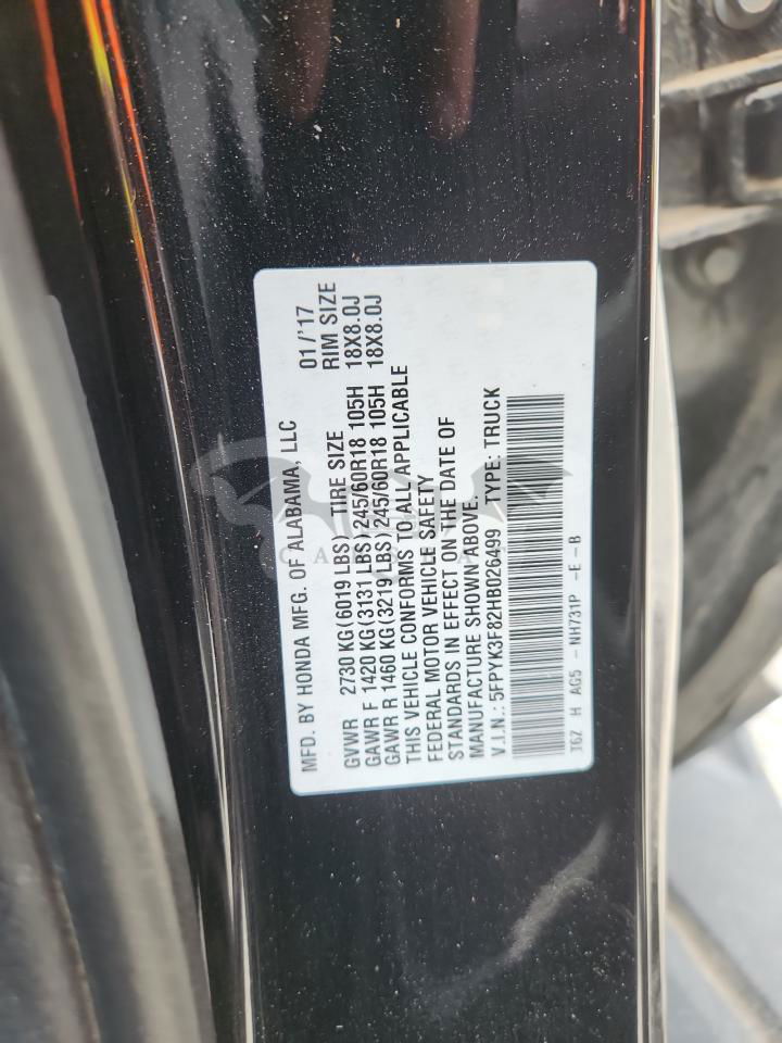• VIN: 5FPYK3F82HB026499
