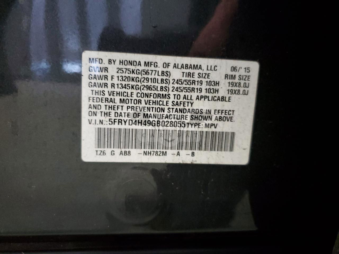 • VIN: 5FRYD4H49GB028055