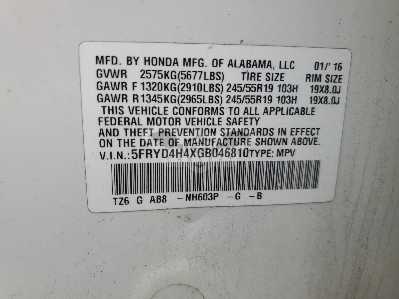 • VIN: 5FRYD4H4XGB046810