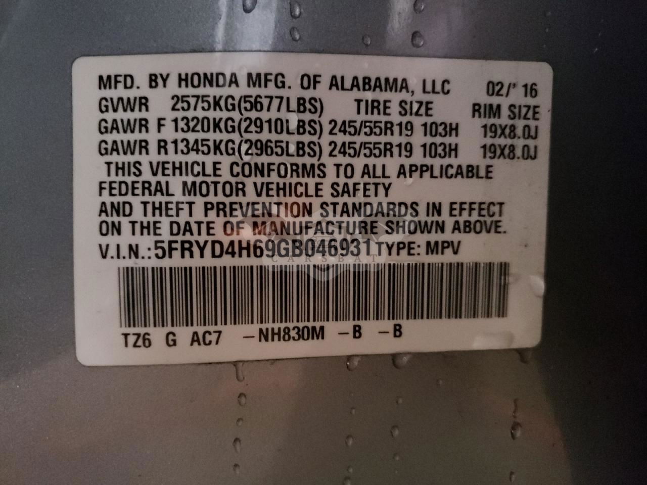 • VIN: 5FRYD4H69GB046931