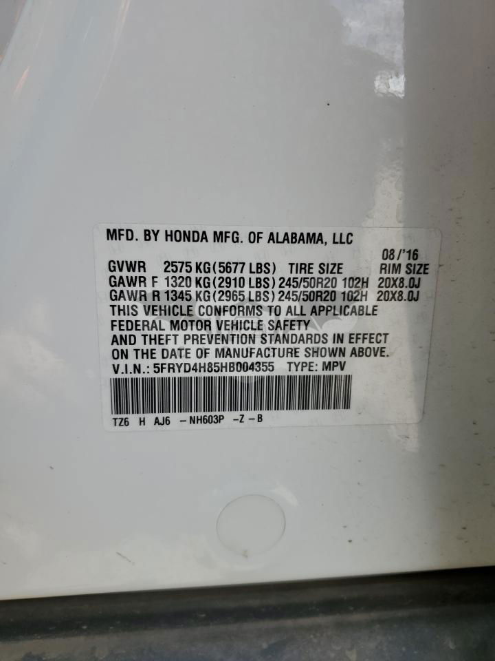 • VIN: 5FRYD4H85HB004355