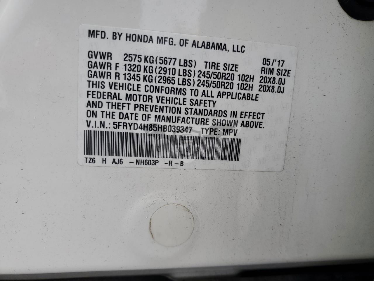 5FRYD4H85HB039347