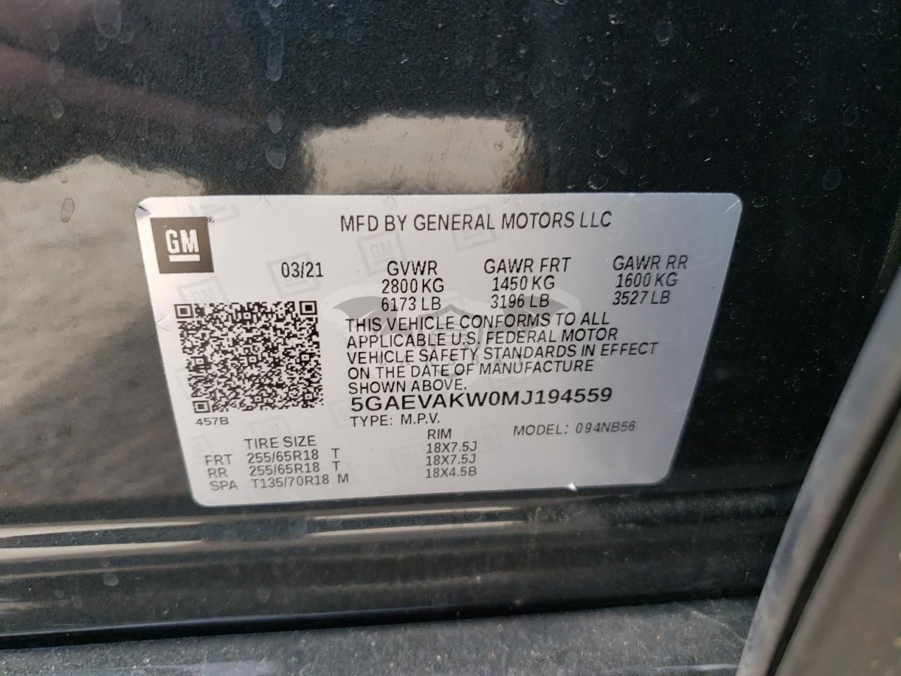 • VIN: 5GAEVAKW0MJ194559