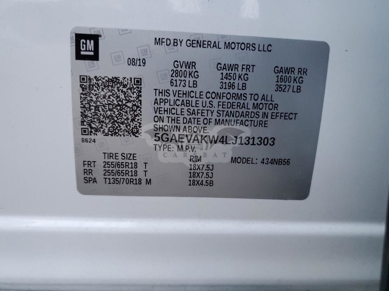 • VIN: 5GAEVAKW4LJ131303