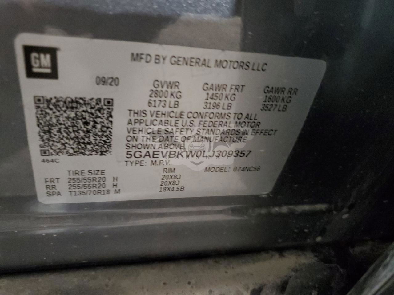 • VIN: 5GAEVBKW0LJ309357