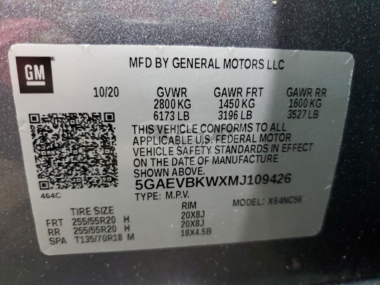 • VIN: 5GAEVBKWXMJ109426