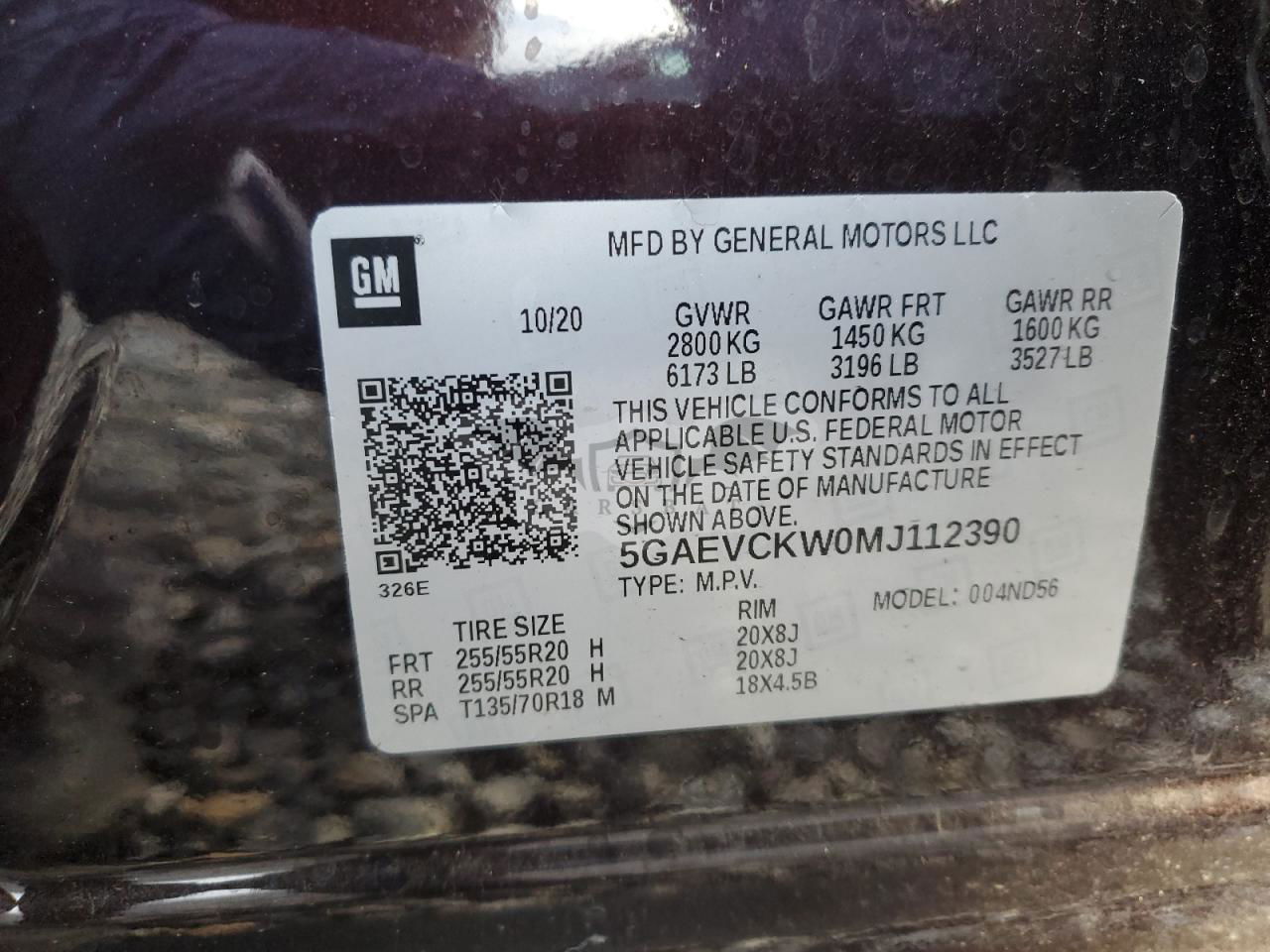 • VIN: 5GAEVCKW0MJ112390